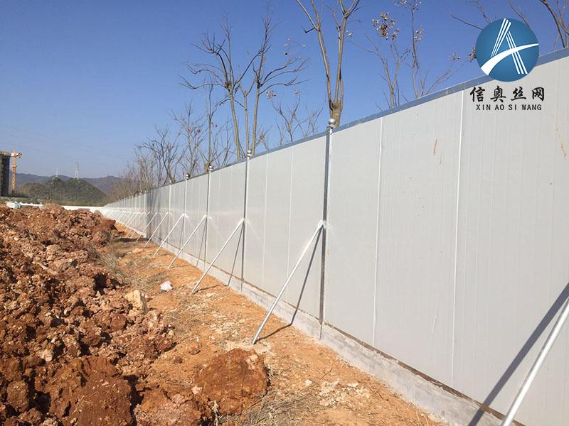 夾芯圍擋特點:夾芯板圍擋平整、美觀、實用性強、,可重復使用,無需砌磚,無需水泥墩,不退色不變形不用維修,安裝拆卸方便快捷,多種顏色可選。