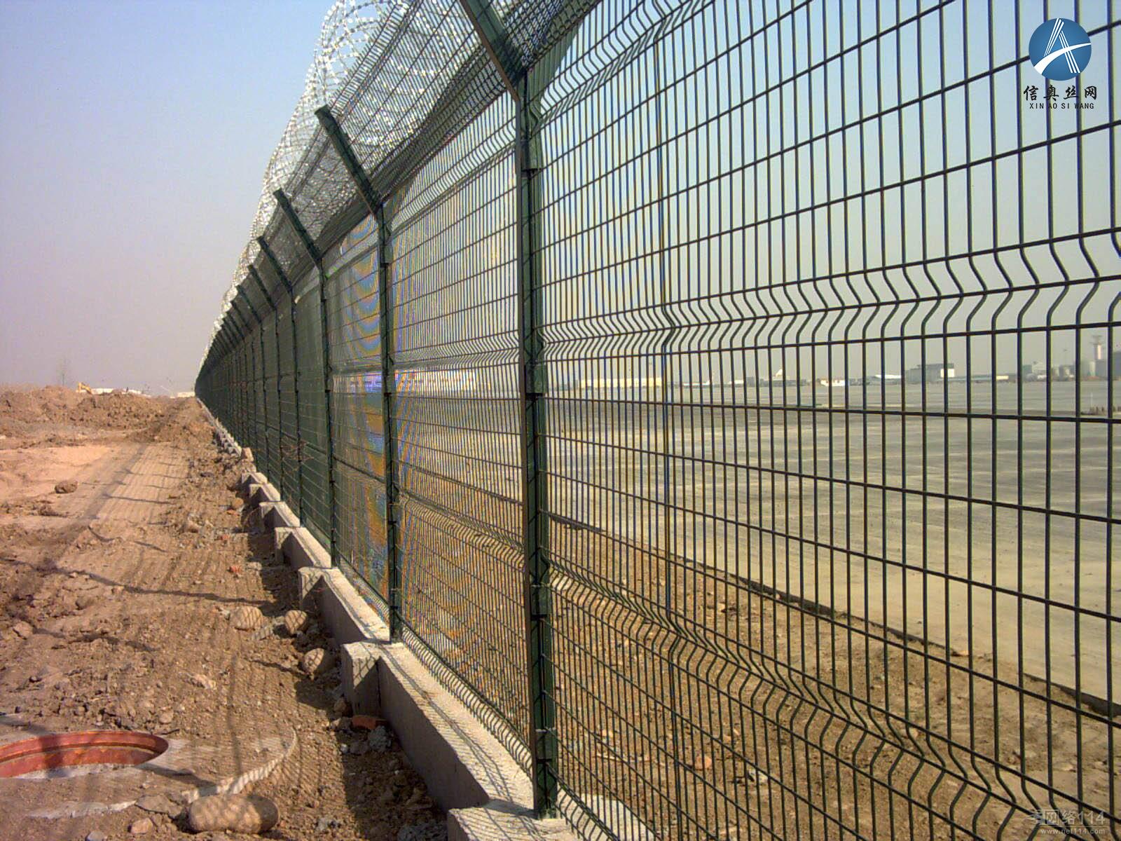 4.機場護欄網的制作技術:板絲、裁剪、焊接、預彎曲、檢測、置框、美化(PE、PVC、熱浸)。